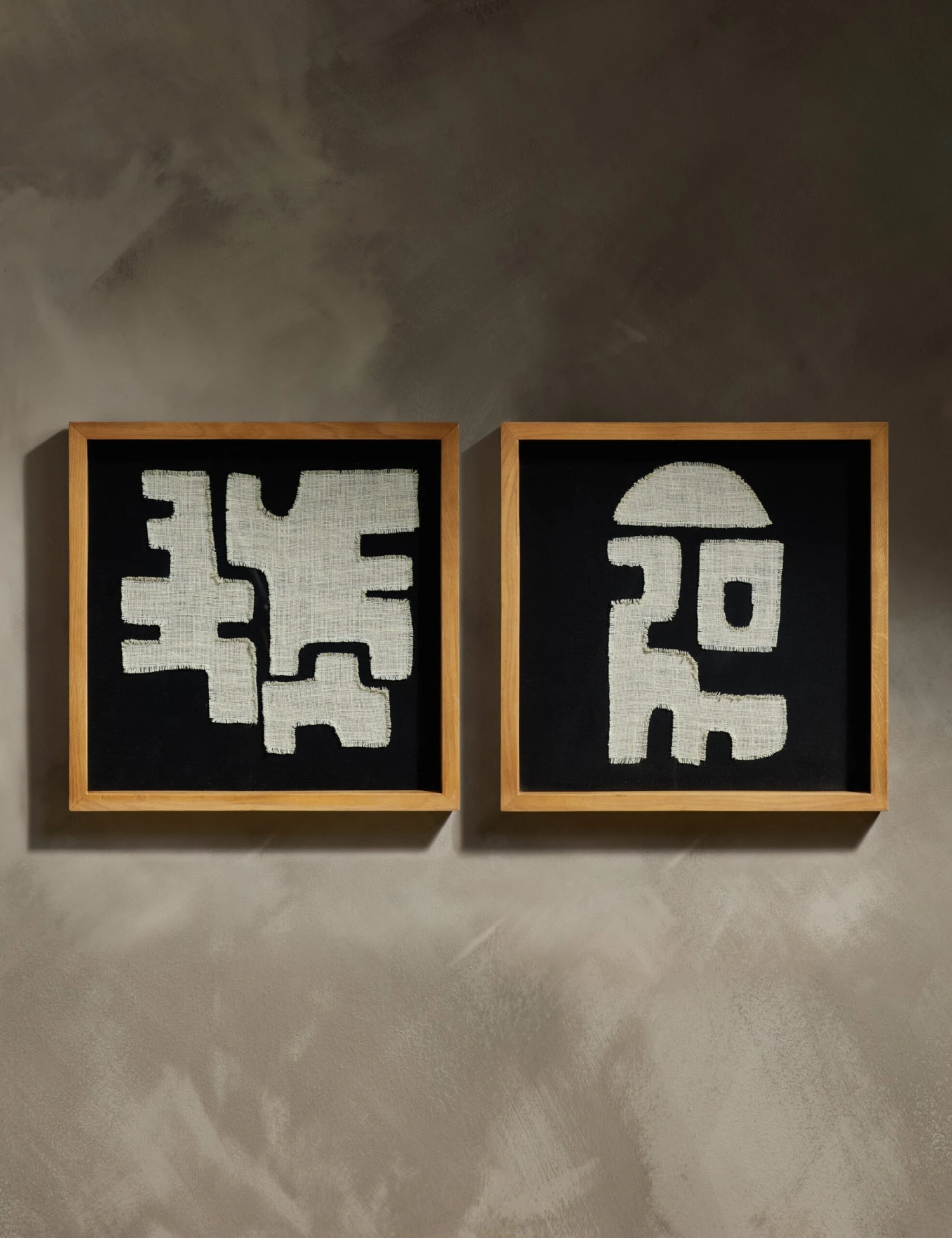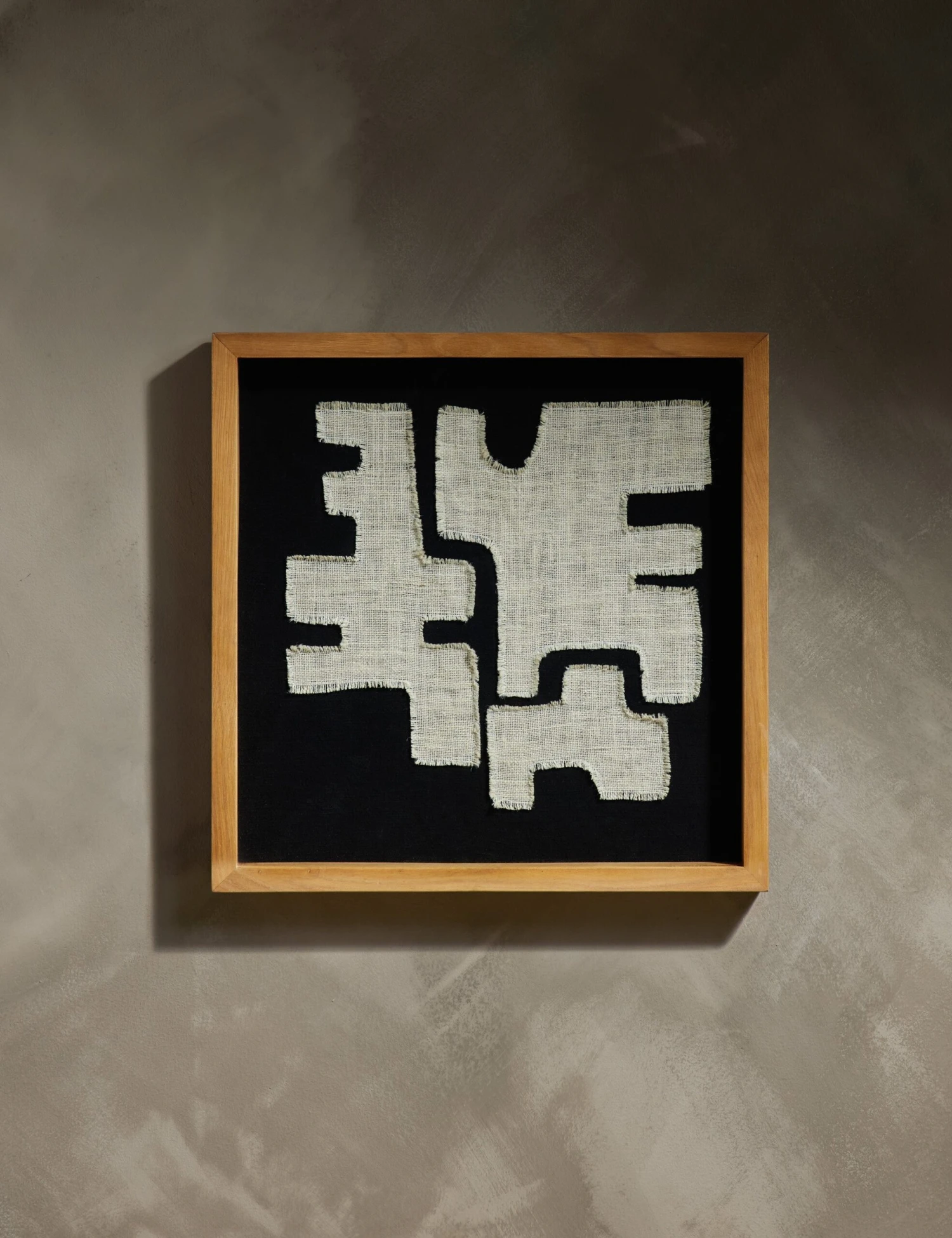 In her exclusive collection for Lulu and Georgia, Hadiya Williams uses clay, textiles, and other natural materials to tell visual stories inspired by the culture of the African diaspora. This handcrafted textile wall art catches the eye with its interlocking arrangement of shapes. We love the bold tone and rich texture for creating impact in your wall decor.