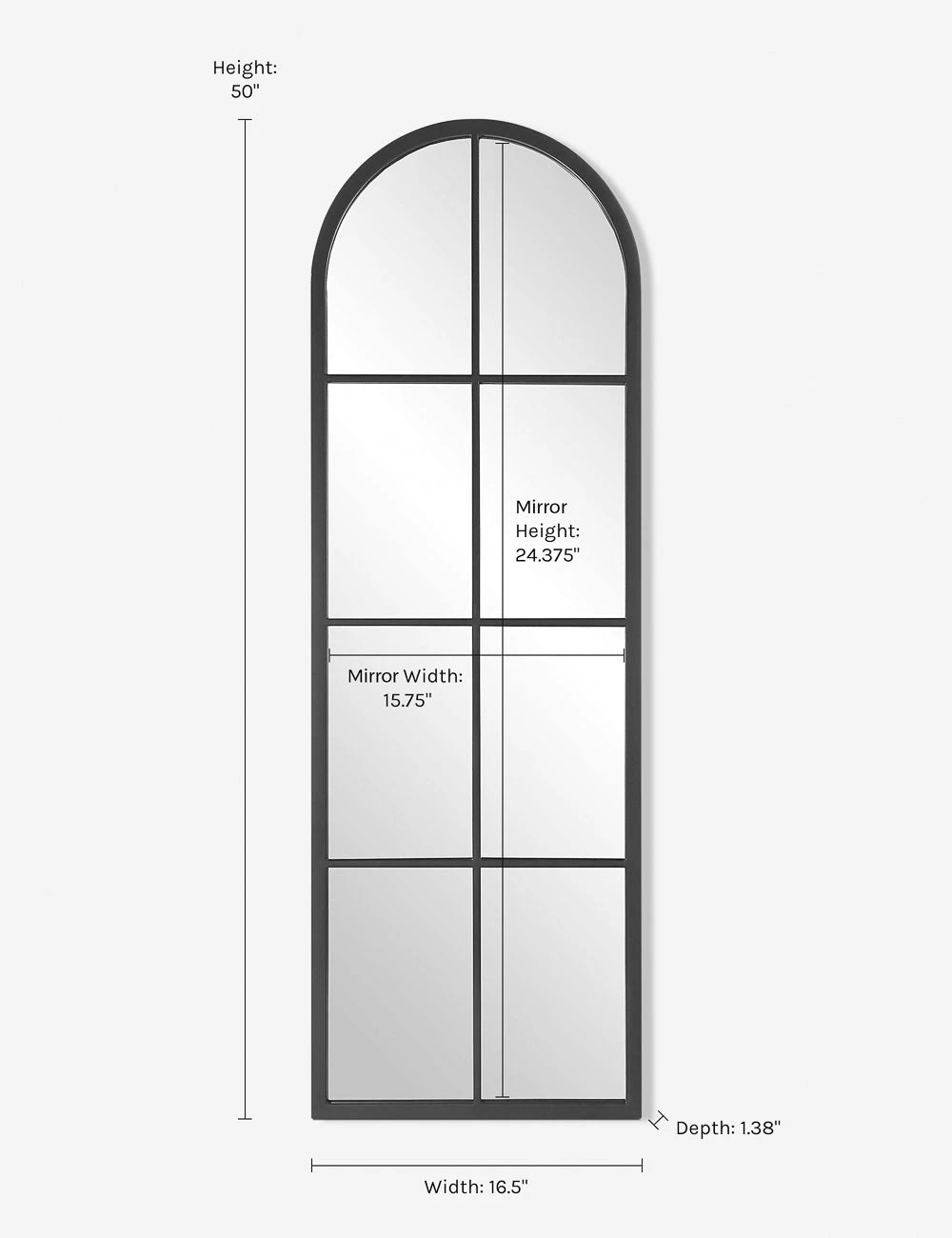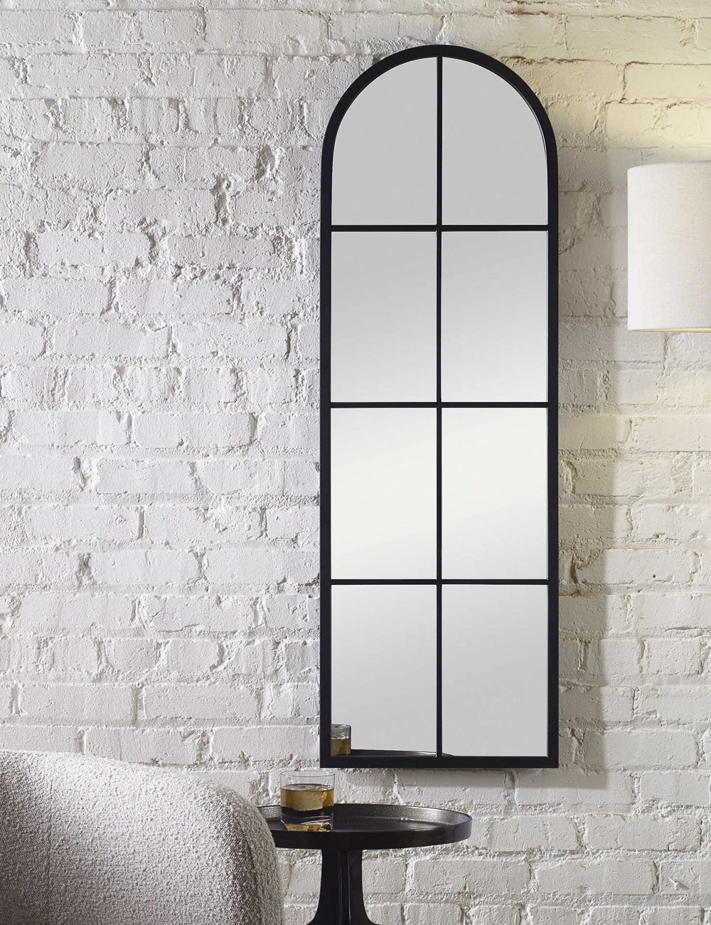 Refresh your space with this classic panel mirror featuring a sleek iron frame for transitional appeal. This arched, windowpane-style mirror will augment the dimensions of your room-style in pairs for a balanced look.