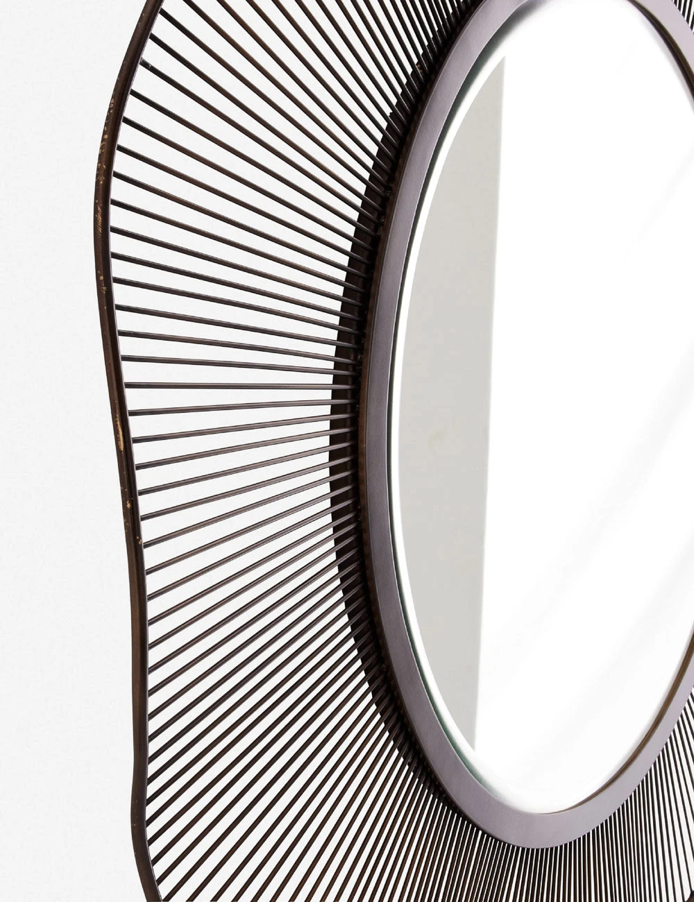 Strike a natural balance in your entryway or living space with this decorative mirror. A wavy wire frame brings organic appeal to this round mirror design, while its lustrous finish and beveled edge set off a brilliantly refined tone.