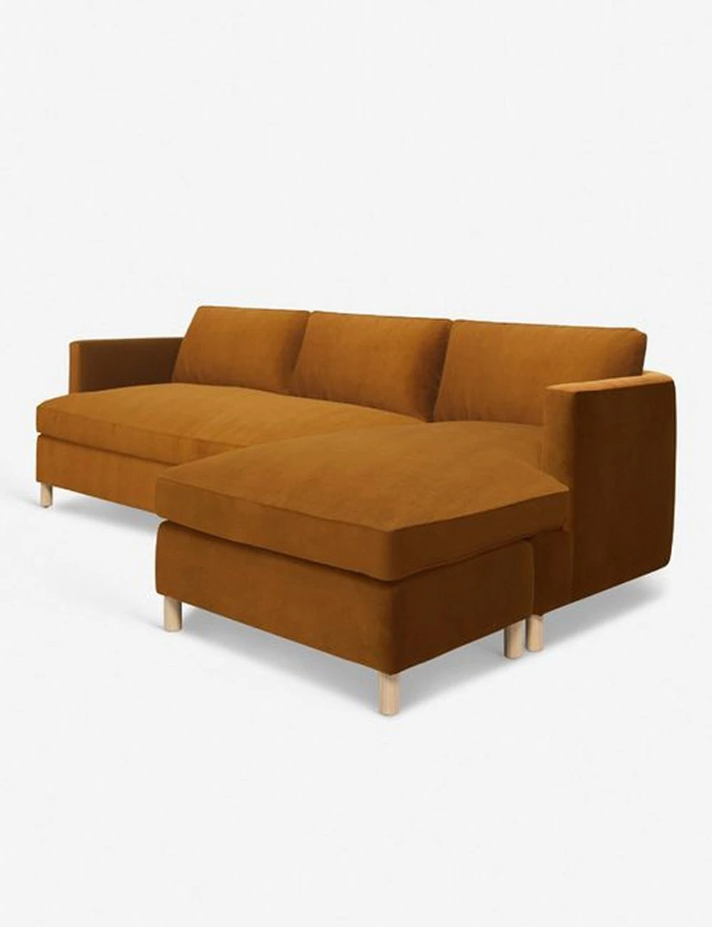 From the exclusive Ginny Macdonald collection for Lulu and Georgia, this classic sectional sofa features a curved back and plush, oversized cushions to bring a polished yet transitional look to your living room seating. Inspired by Ginny’s English heritage and handmade in Los Angeles, the collection fuses her British roots with her California lifestyle. This comfortable sectional is available in a variety of fabrics and colors, making it the perfect mix-and-match piece.