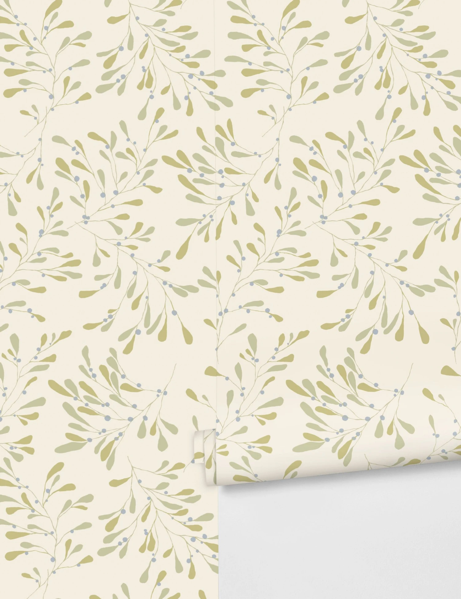 Artist Susan Hable’s experience in collage, sculpture, welding, drawing, and printmaking informs her uniquely inspired collection. Simple elements thoughtfully arranged to create a tricolor botanical motif set on a warm neutral backdrop in this wallpaper. For a paper wall décor that pairs dynamic appeal with a minimalist motif, this design in a fresh green tone will liven up a vintage-inspired living space or playroom.