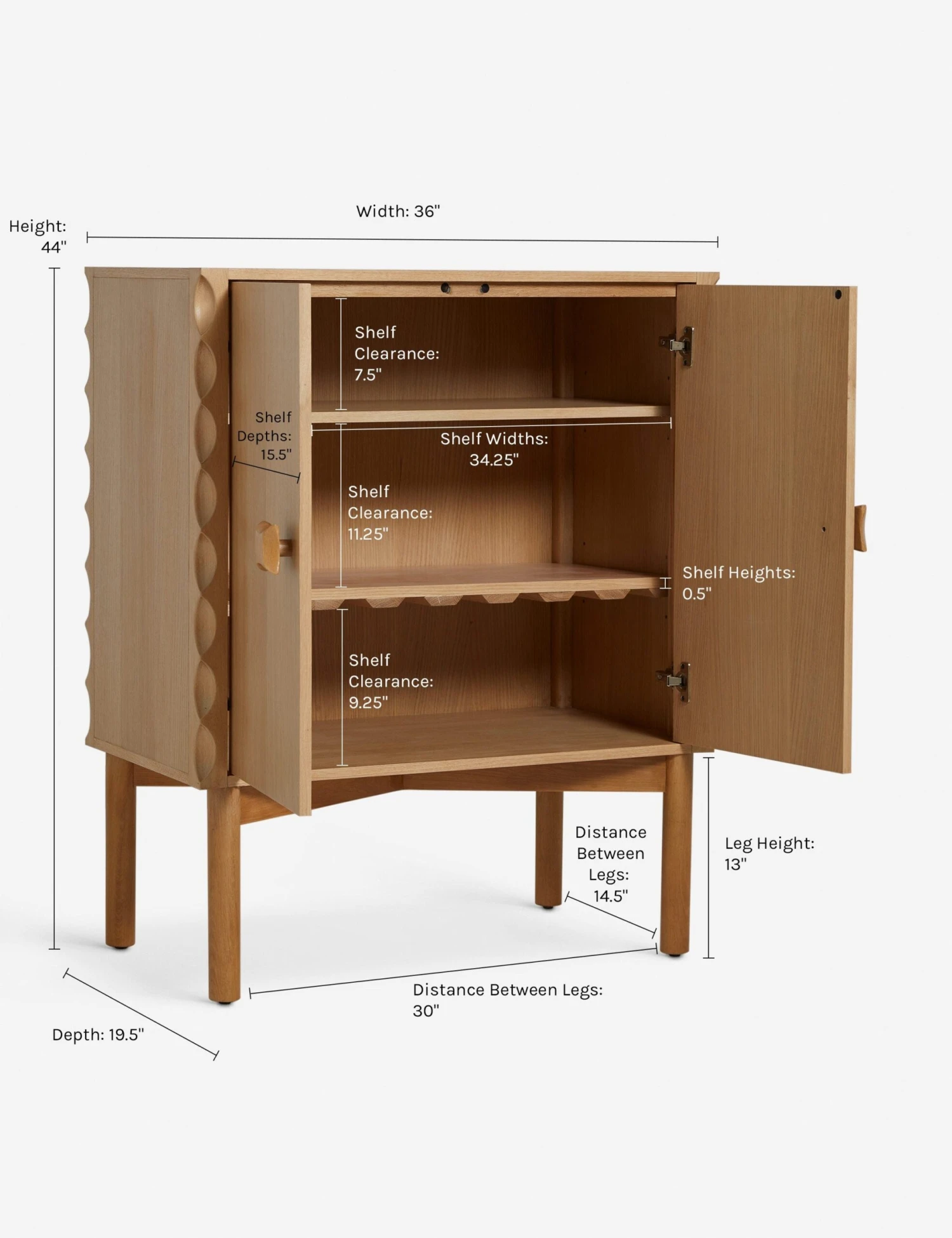 Eny Lee Parker brings her thoughtfully grounded approachโan embrace of slowness, intention, and respect for natureโto an exclusive collection with Lulu and Georgia. The Cami bar cabinet casts a stylish profile with its natural oak grain and corner detailing. Inside, a reversible wine shelf brings functional appeal to the elegant form.