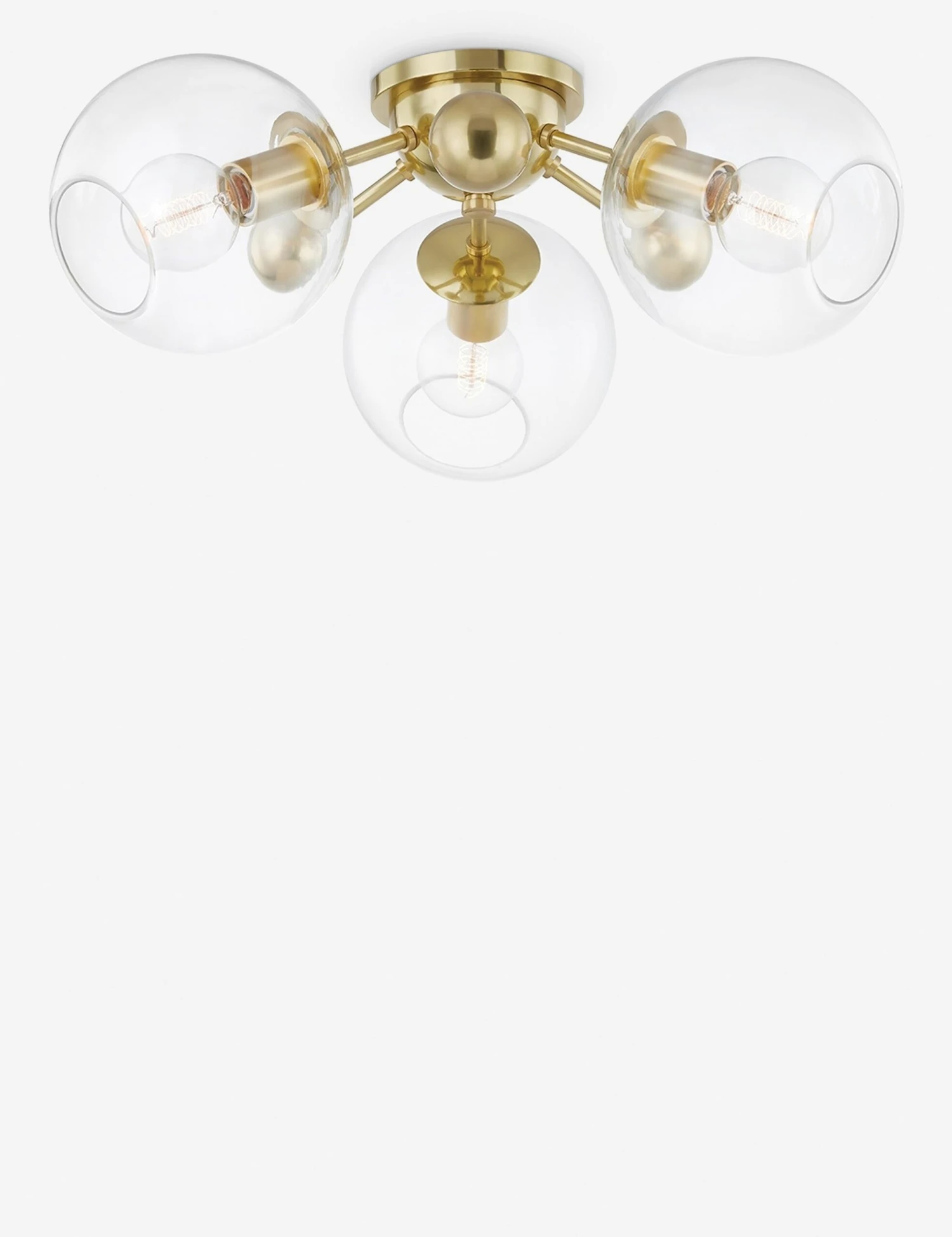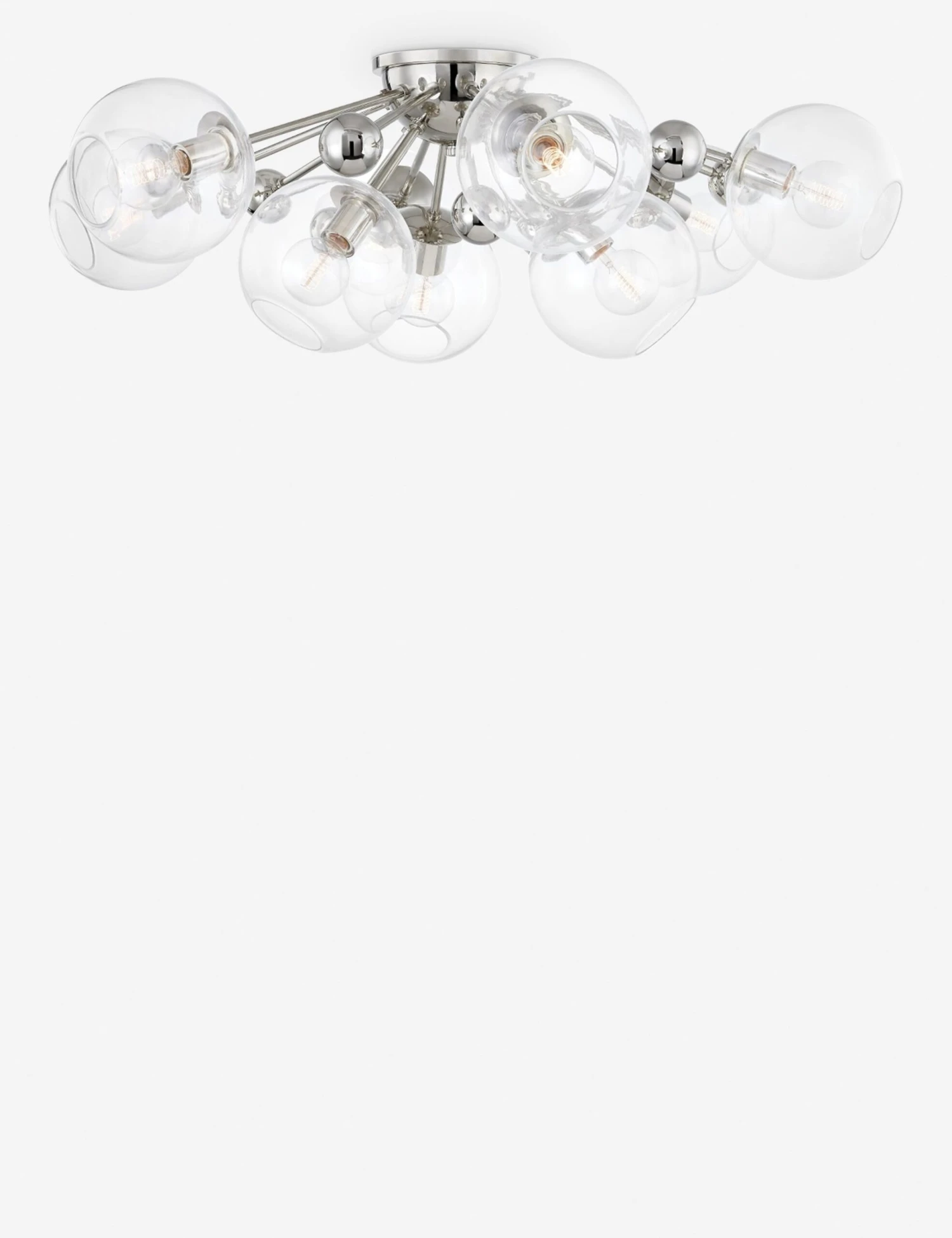 In a polished nickel finish, this three-light ceiling lamp is made from a striking mix of orb-like shades and spherical accents that will brilliantly cast and reflect light. Style this ceiling light in an airy space with plenty of bright neutral tones for a refined touch.
