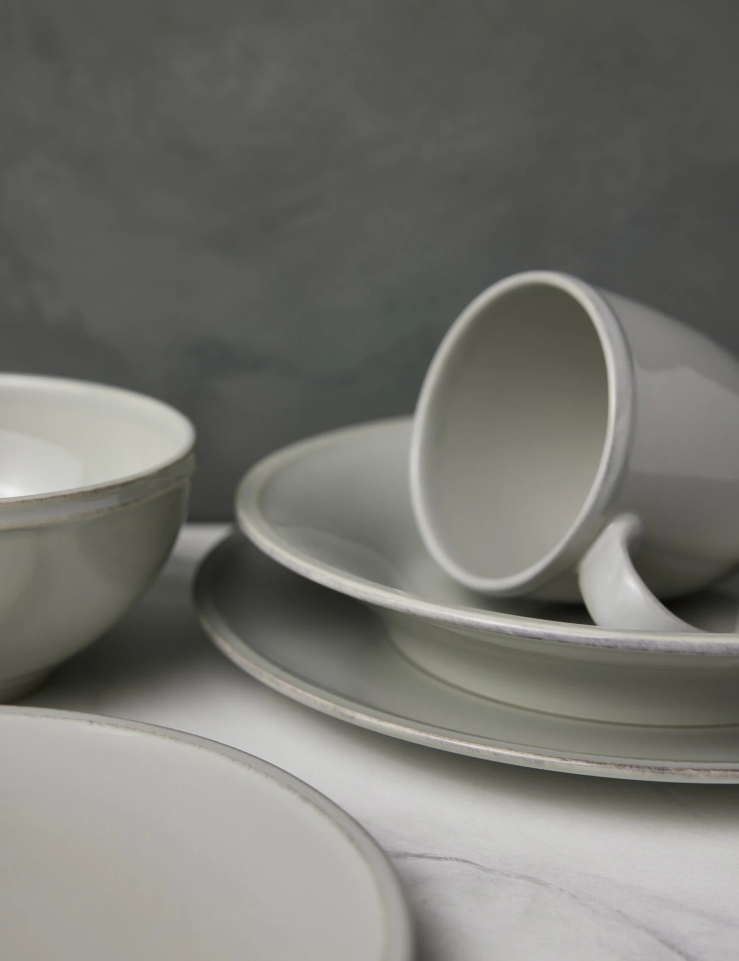 Refined lines, versatile design, and durable stoneware construction make the Friso dinnerware collection a favorite, from fine dining to everyday eating. The grooved edge is hand-painted for an artisanal touch that will fit perfectly into your home decor.