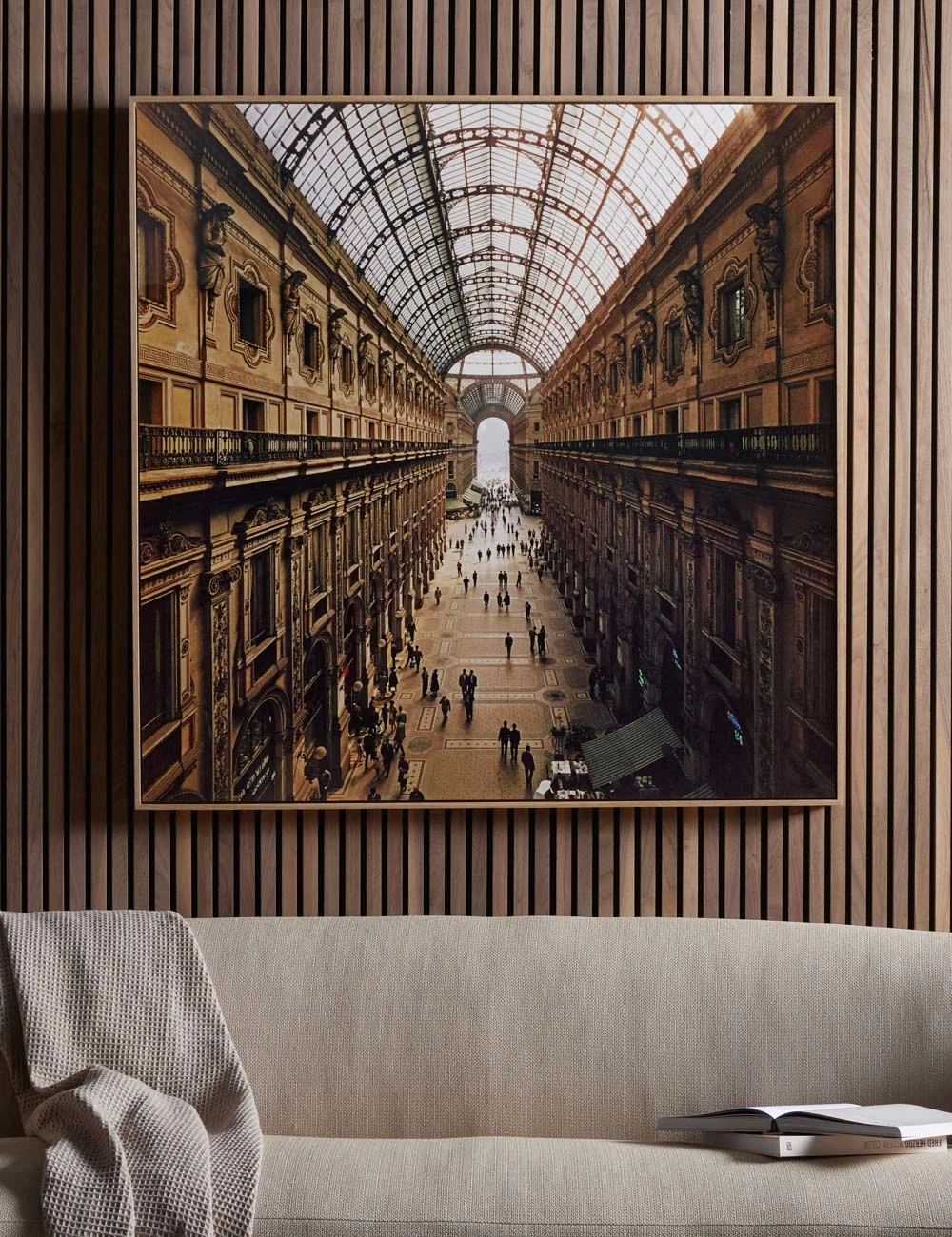 The arched glass roof and ornate facade of Milan’s oldest galleria offer architectural symmetry with an antique tone. This wall art print showcases Slim Aarons’ legendary photographyโcapturing a vintage world of jet set leisure. Printed directly on aluminum using ChromaLuxe technology to offer unique, gallery-quality wall art filled with stunning color and definition.