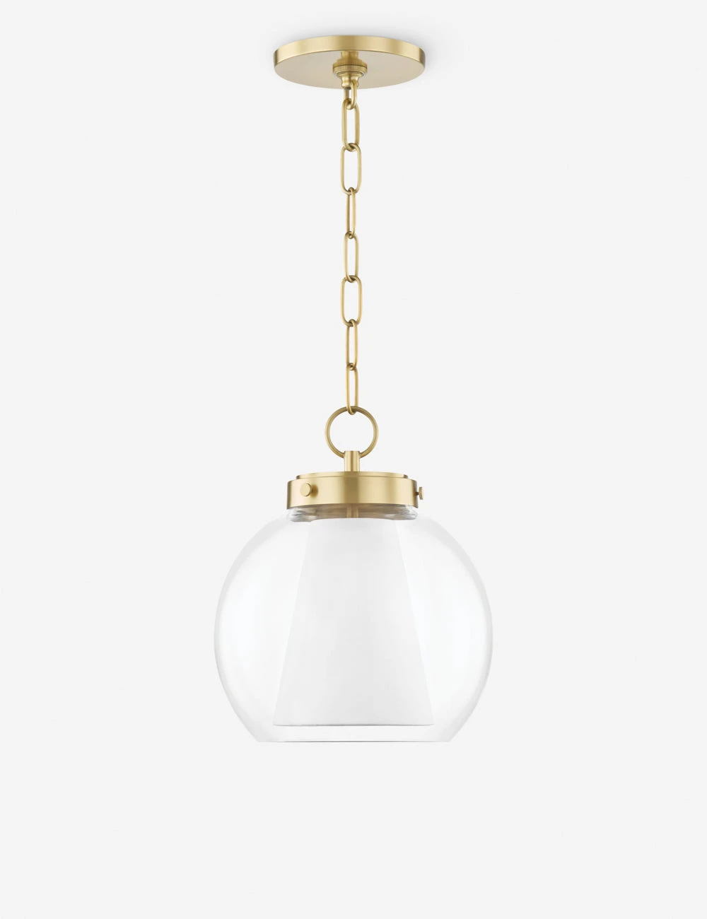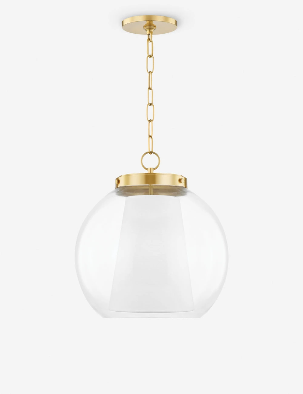 Polish your lighting design with a refined touch of this double-shaded hanging light. The Harrell pendant features an open glass orb around a tapered white shade neatly suspended from a chain. Endlessly versatile and instantly elevating, this design is ready-made stunner.