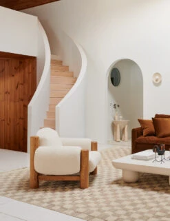 With a thick round show wood frame and super soft faux sherpa upholstery, this lounge chair offers an inviting place to cozy up. Rounded corners soften this accent chair’s lookโmaking it feel at home in a living room, nursery, or study. This piece is from our exclusive Sarah Sherman Samuel collaboration and features all the trademarks of her warm, edited style.