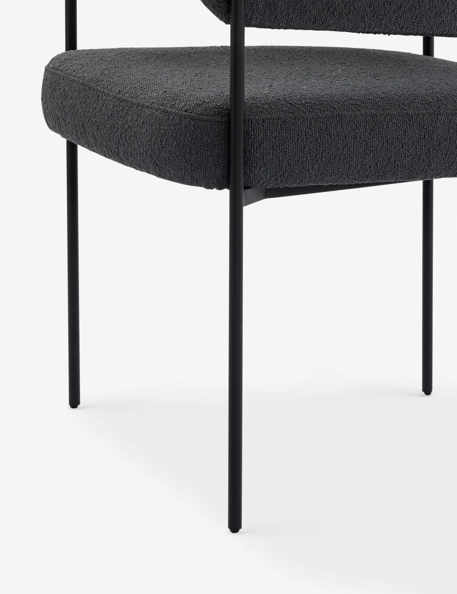 Kyleigh offers a chic dining room chair with a slim iron frame contrasting its plush upholstered seat. Its airy design and soft lines make this dining chair ideal for a fresh, transitional space.