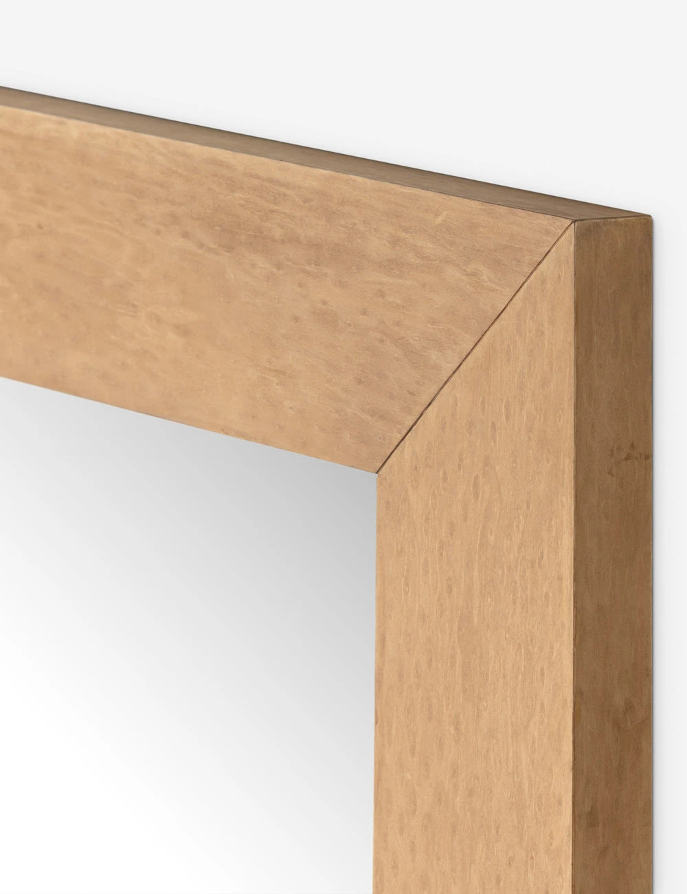 This burl wood mirror is fashioned with thick cuts of birdseye maple to offer a unique natural grain. The clean and simple design lets the beauty of the material breathe in a versatile wall mirror that can fold into any room with an elevating organic tone.
