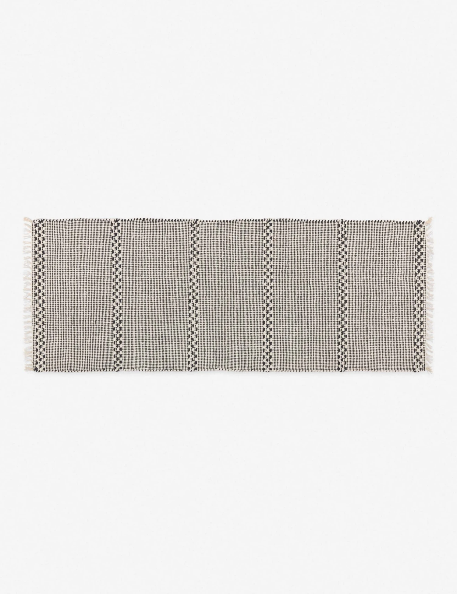 Our machine washable Masha Mat is made from 100% cotton for effortless style, featuring a pretty geometric design in black and gray hues. Its soft quality can add a fresh and breezy touch from a neutral-toned kitchen or bath to a cozy, grounded entryway.