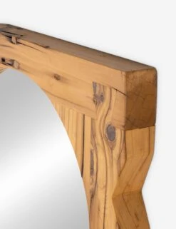 Inspired by Romanian sculptor Constantin Brรขncuศi, this reclaimed pine frame showcases an artisan touch with a hand-carved shape and beautiful joinery bounding an elliptical mirror. This large-scale floor mirror is a statement piece for your space that offers natural grain texture with a bold sculptural silhouette.