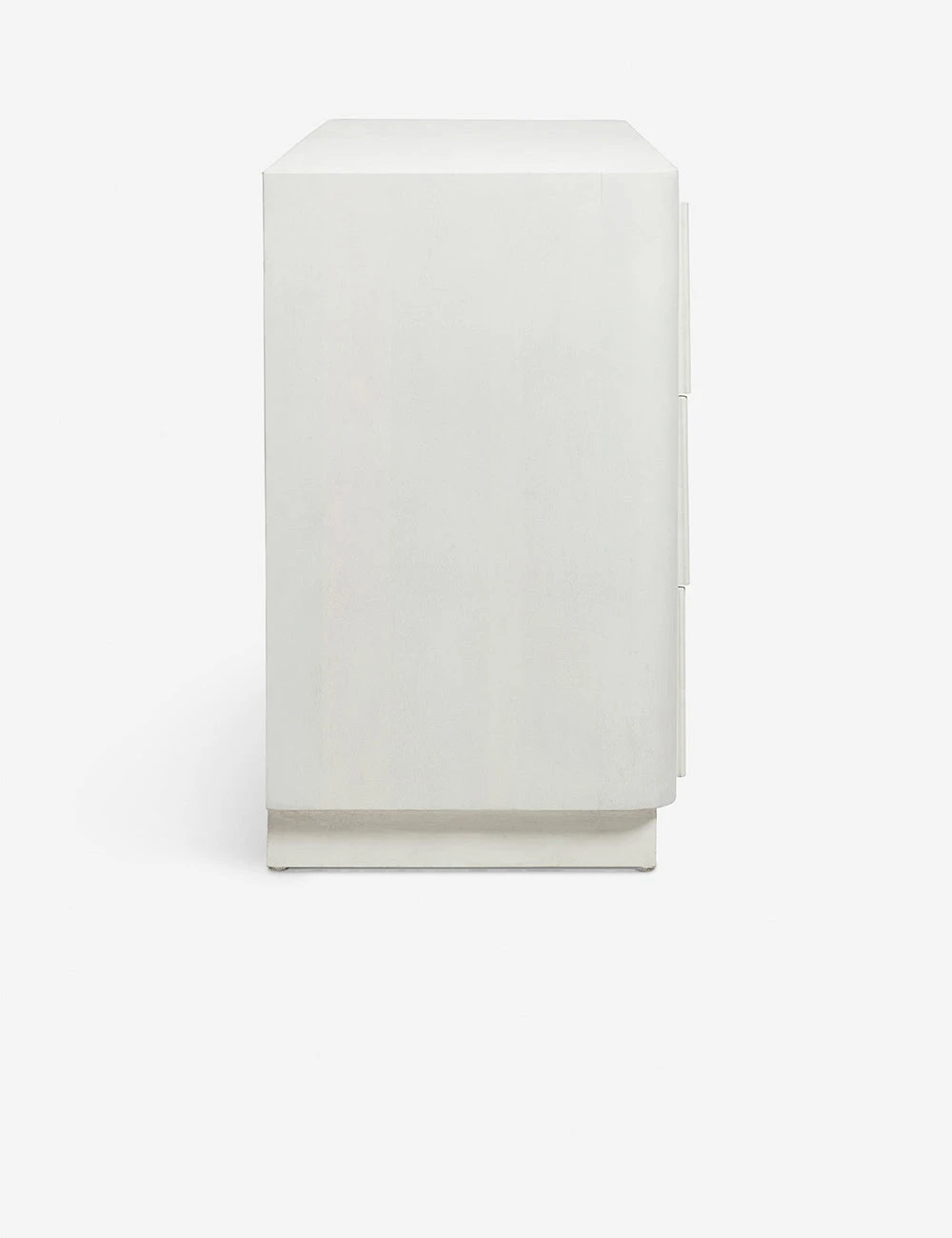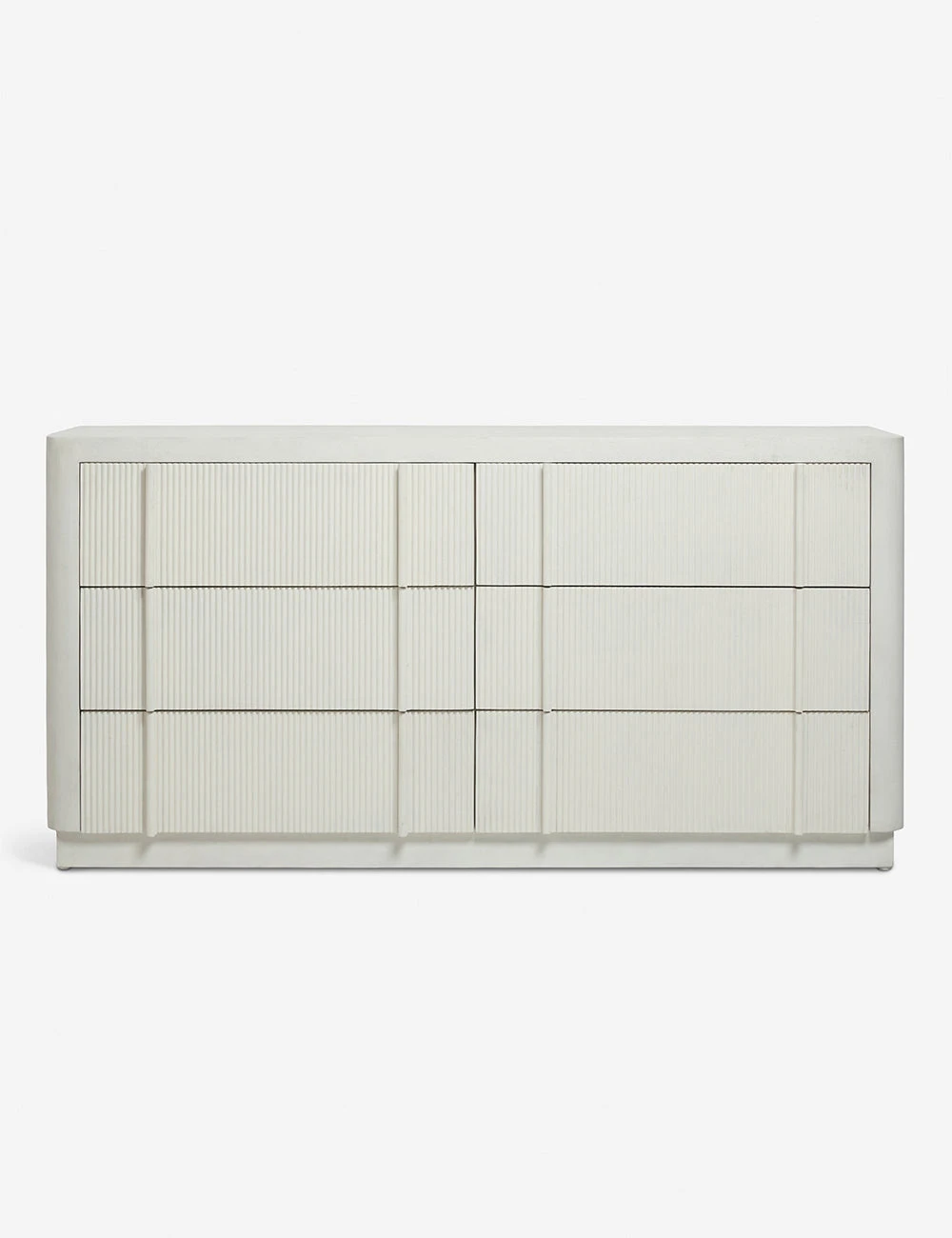 The Merrit dresser features a deco-inspired woodwork construction that pairs crisp, curving lines with ridged detailing and carved drawer pulls. Set on a plinth base, this dresser has six spacious drawers to add function and style to a transitional bedroom look. This piece is from our exclusive Sarah Sherman Samuel collaboration and features all the trademarks of her warm, edited style.