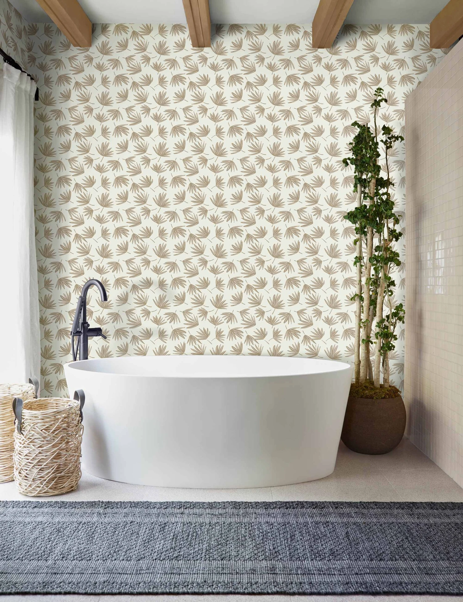 Designed exclusively for Lulu and Georgia, our Rylee + Cru wallpaper collection features subtly textured designs inspired by travel, nature, and vintage illustrations. Bring a breezy charm to a bathroom, kitchen, or kids’ room with this palm pattern home wallpaper. Its botanical motif offers an inspired but understated touch to add a warm graphic element.