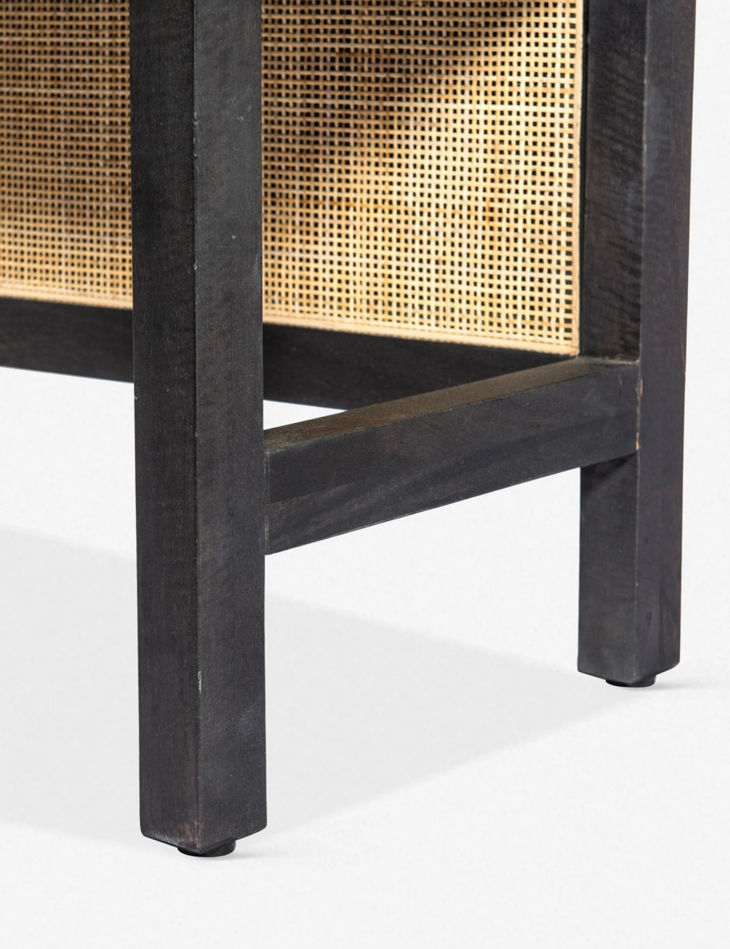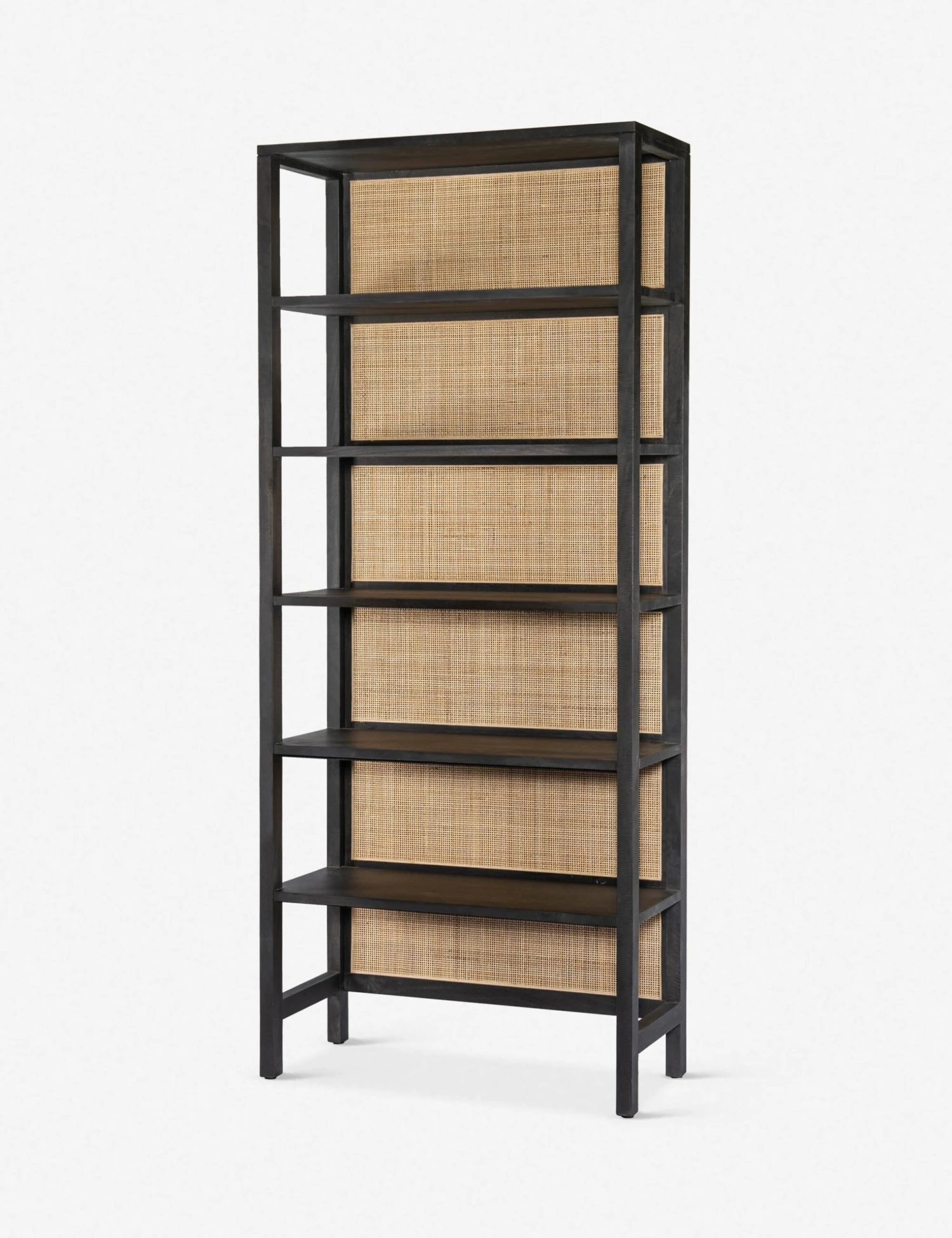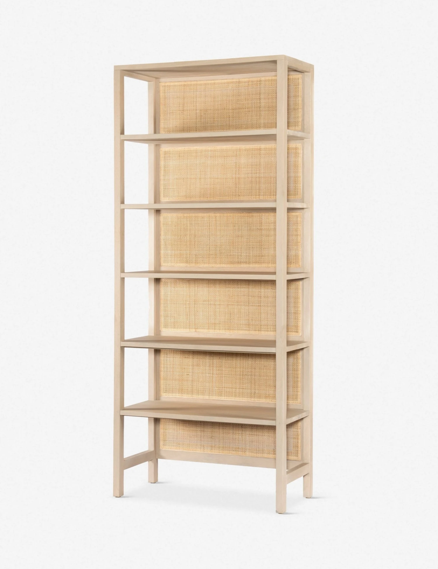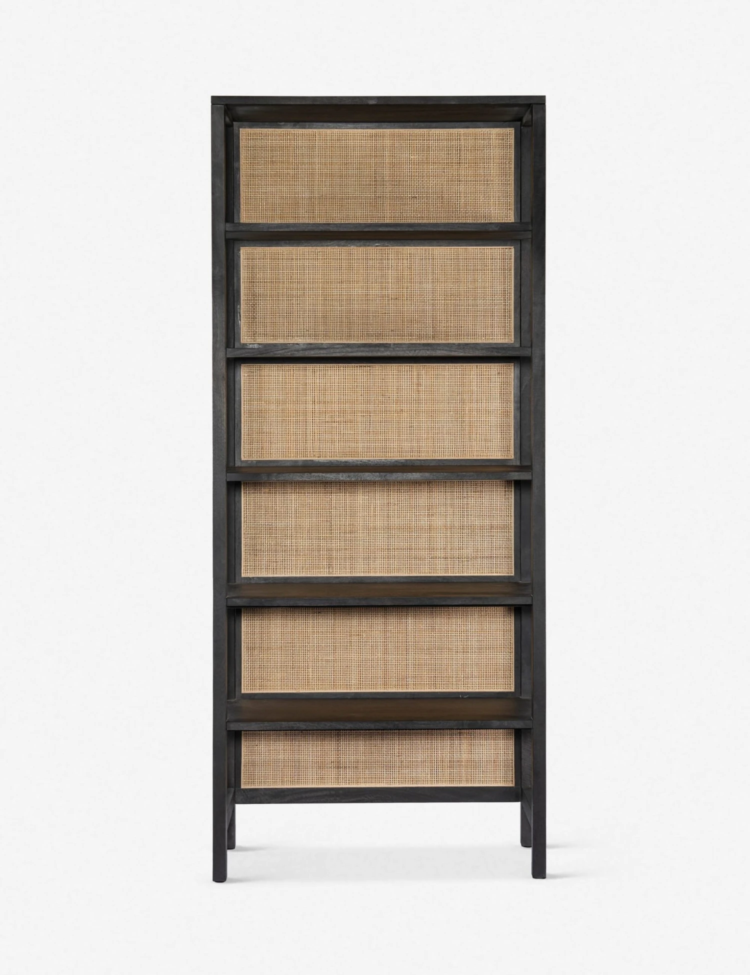 Spacious, open shelving is essential for transitional spaces. This tall wooden bookshelf has an airy, natural feel with a light mango wood frame and a woven cane backing for added texture. The open bottom is perfect for adding storage bins or baskets to complete the look.