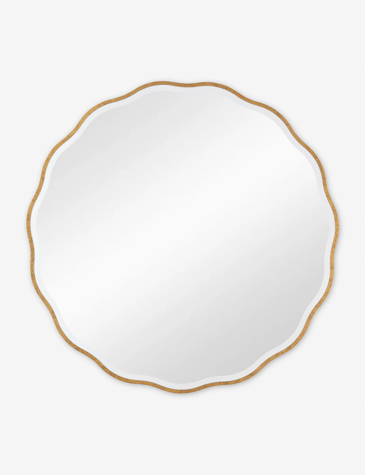 Scalloped gold beveled edges give this framed mirror a whimsical touch. The eye-catching silhouette makes this round mirror perfect for a nursery or in your entryway above a console table.