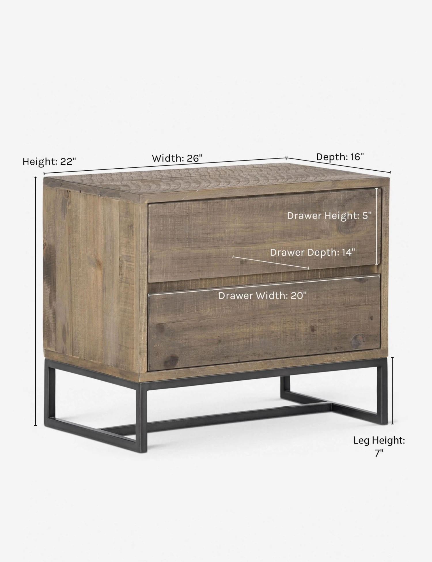 For bedrooms with a touch of rustic style, this nightstand fits right in. The unique grain and knots in the solid pine add endless character, and the metal base and handle-less design keeps the look totally updated.