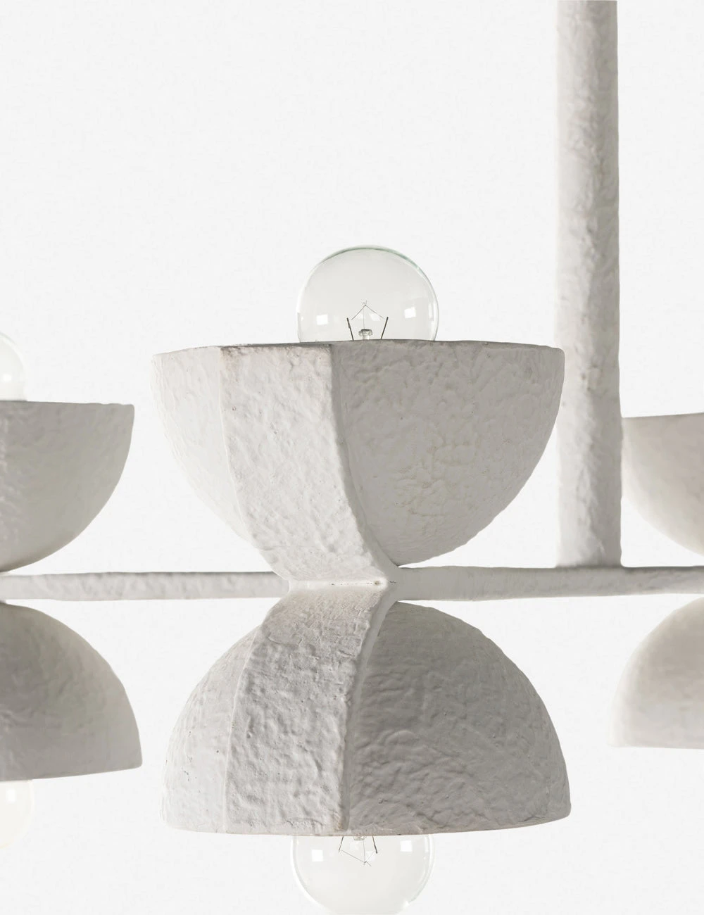 The Ricardo lighting collection brings form to texture with a hand-molded look and plaster-like finish. This chandelier offers brilliant illumination with eight dome shades arranged to pour light up and down. Create a timeless statement over your dining or coffee table with this unique chandelier light.