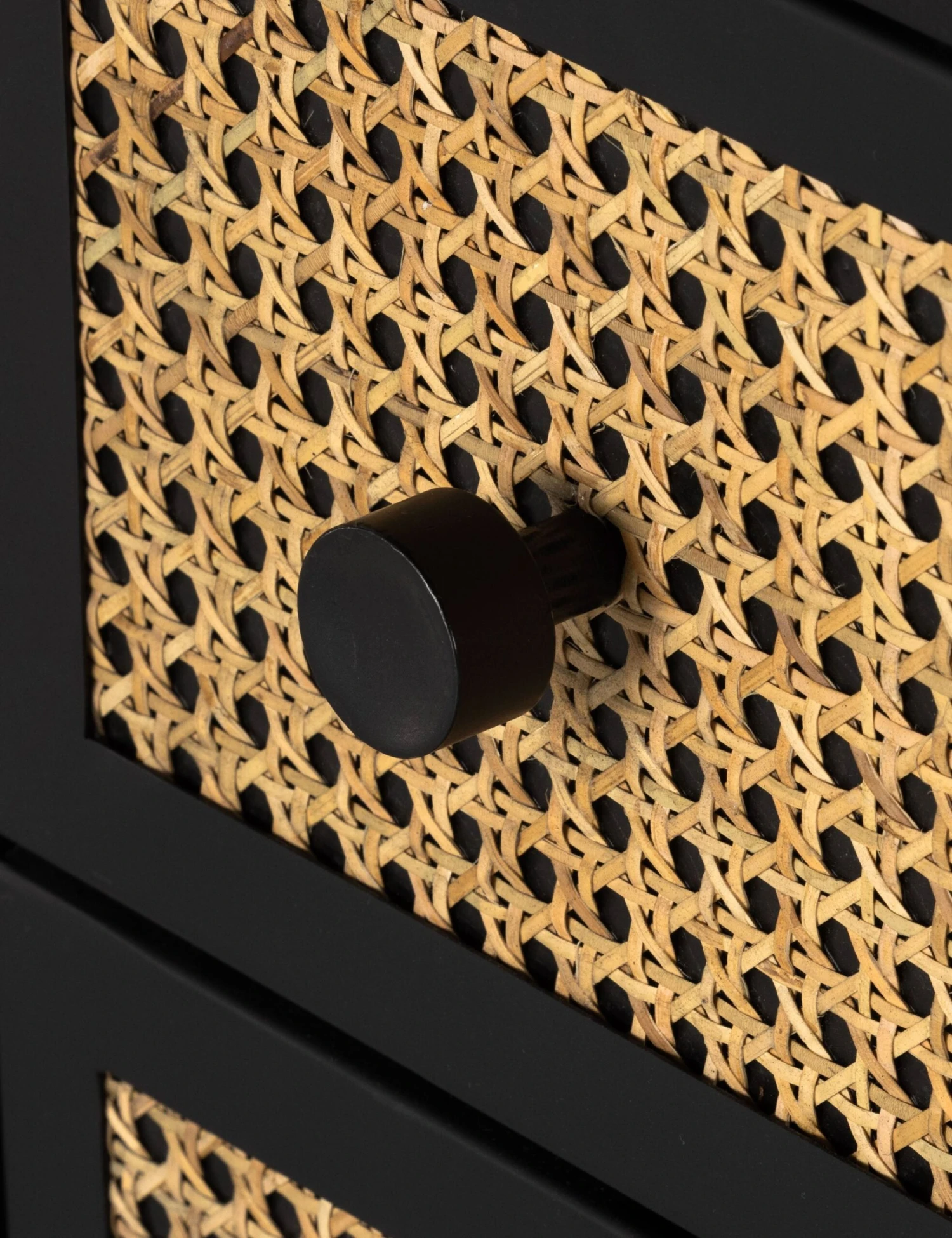 Modern charm is in the mix with this clean-framed dresser. Natural cane paneling pops against the sleek, black iron frame in a thoughtfully balanced design. With six drawers and a low top, this dresser blends fashion and function with seamless appeal.