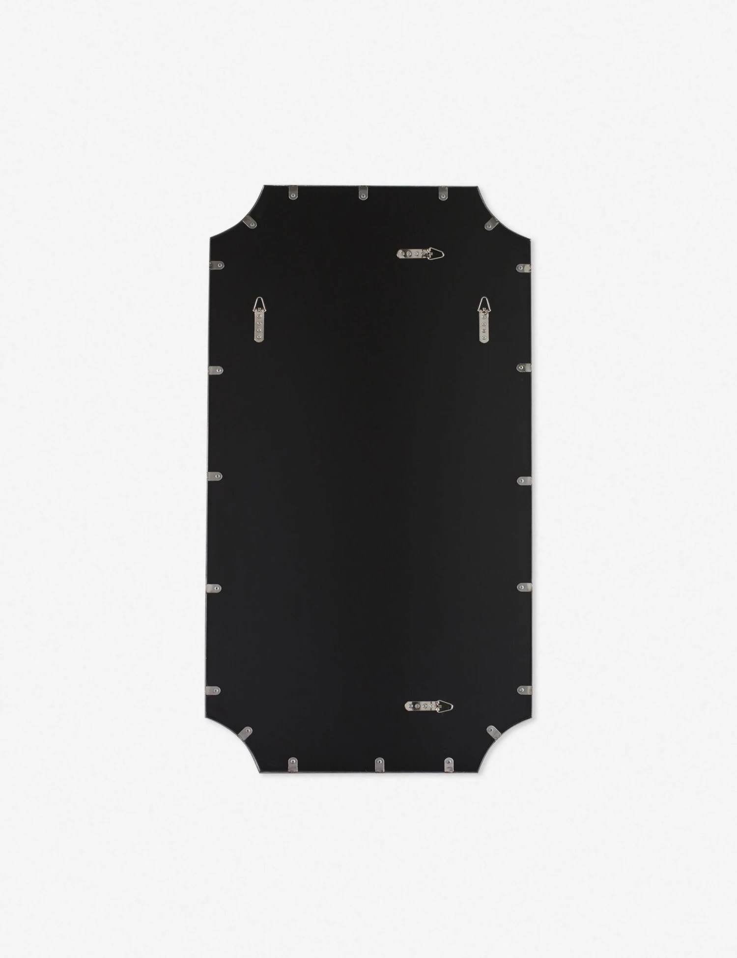This sleek mirror blends a streamlined frame with scalloped corner detailing for a balanced transitional design. Bring a fresh dimension to your space with the distinctive style of this large wall mirror.