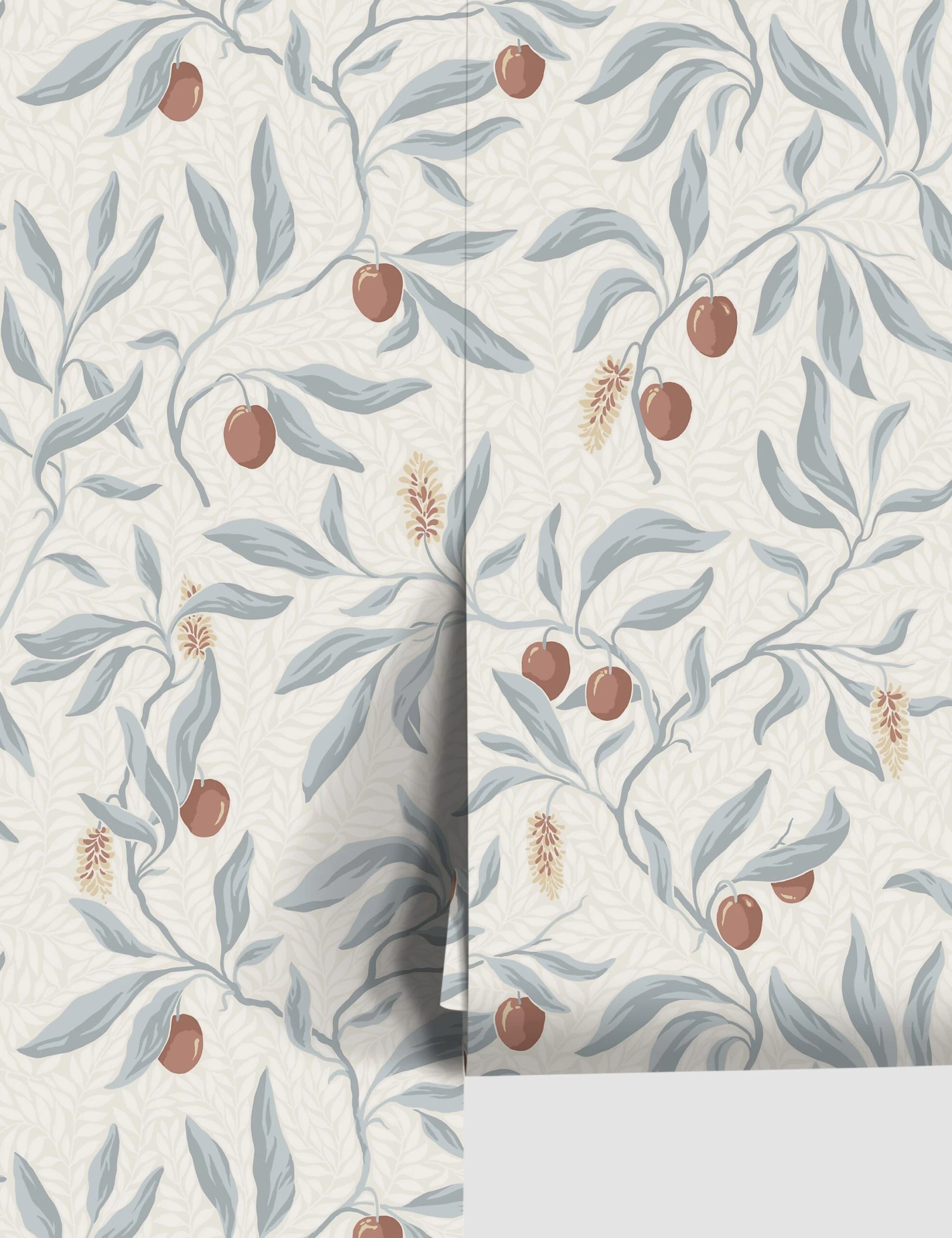 Bring an artful finish to the room with this botanical wallpaper featuring hand-painted lychee fruits on a delicate foliage backdrop. This classic design is brought to life through a traditional printing technique for a textured surface that adds depth and character to your walls. The vibrant colors and intricate details create a timeless wallpaper for any space, from living room to bath.