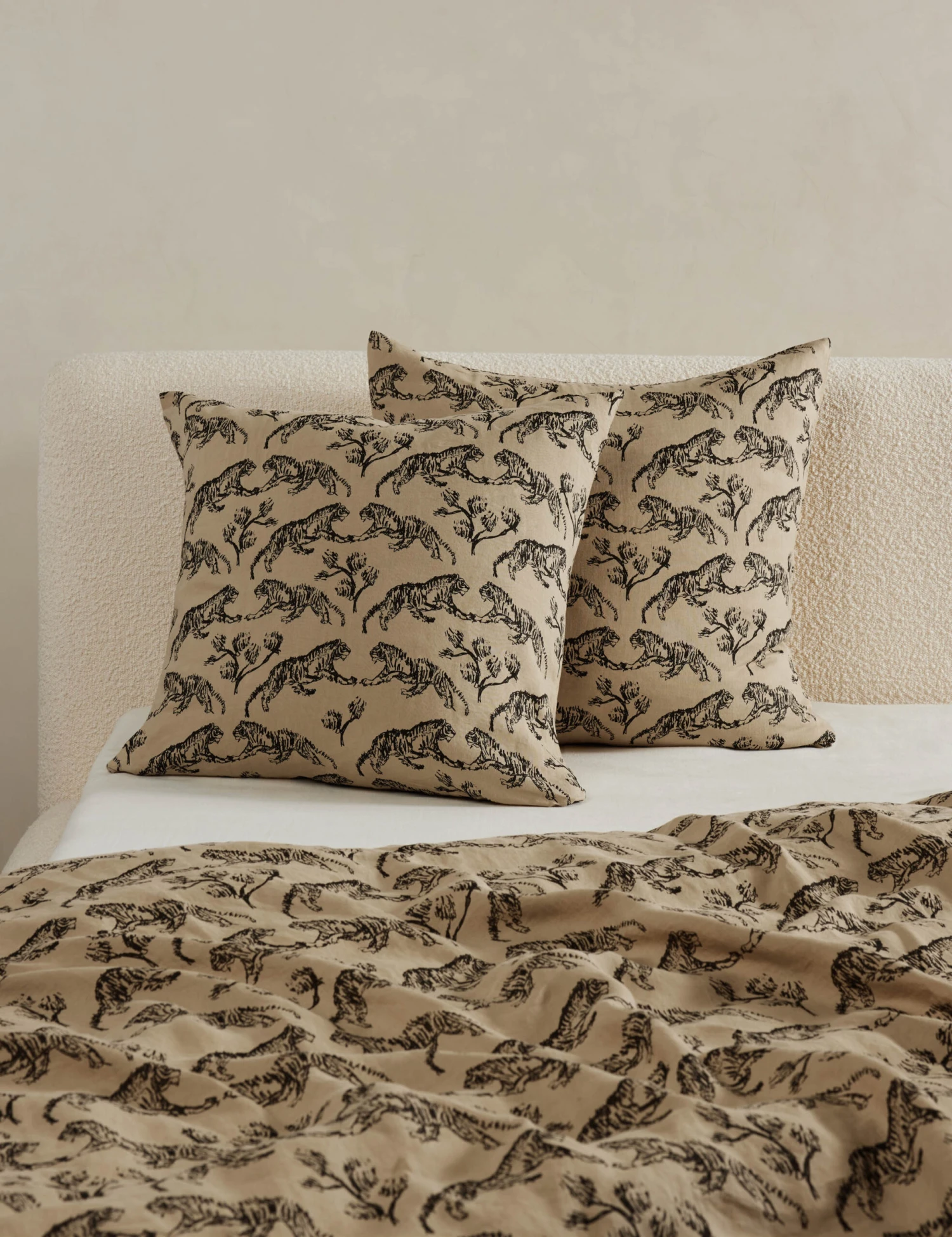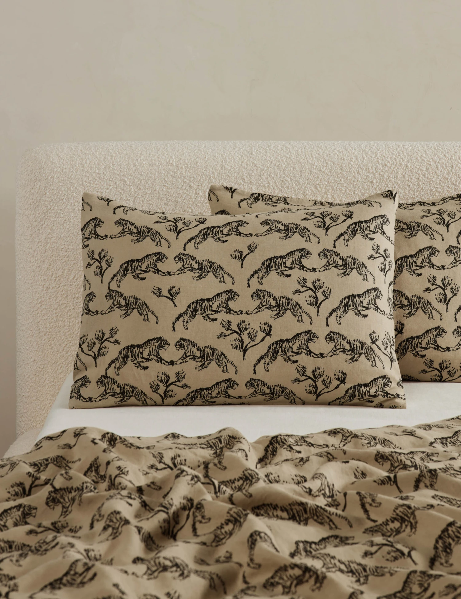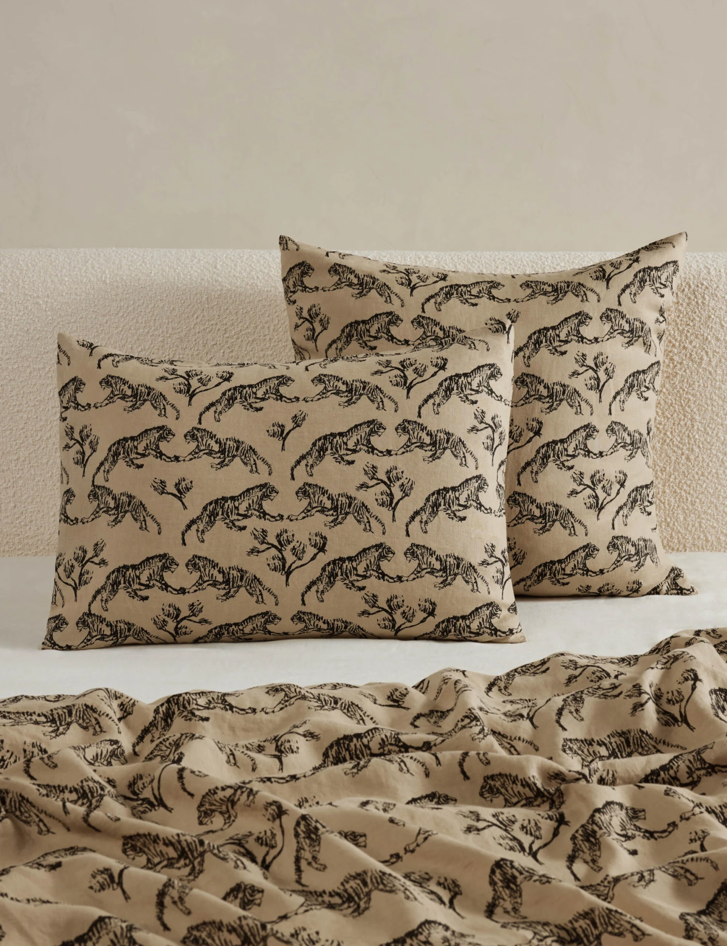 Vintage inspiration meets sustainable comfort in this hemp sham. Hemp is a forgotten fabric that is in revival because of its sustainable impact and durable fibersโmeaning your bedding lasts longer. Drawn by Sarah’s son and styled into an intricate motif, the tiger print offers graphic intrigue for a sophisticated feelโthe perfect way to add depth and texture to your bedding. This sham is from our exclusive Sarah Sherman Samuel collaboration and features all the trademarks of her warm, edited style.