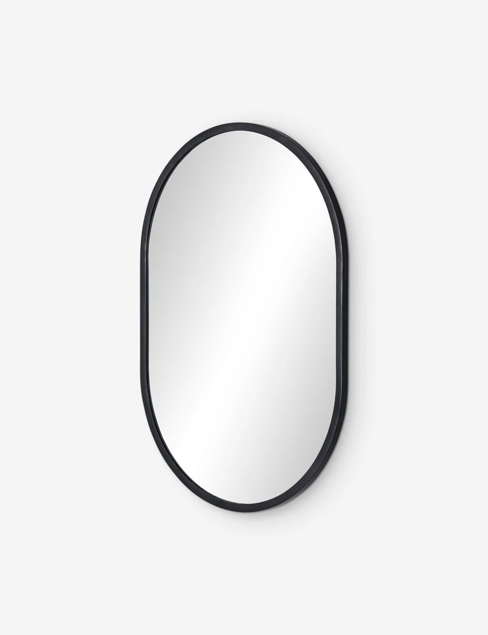 An oval shape and sleek frame inspire soft modernism in this mirror’s design. This versatile wall mirror can hang vertically or horizontally, adding a bright new dimension to transitional decor from bedroom to bath.