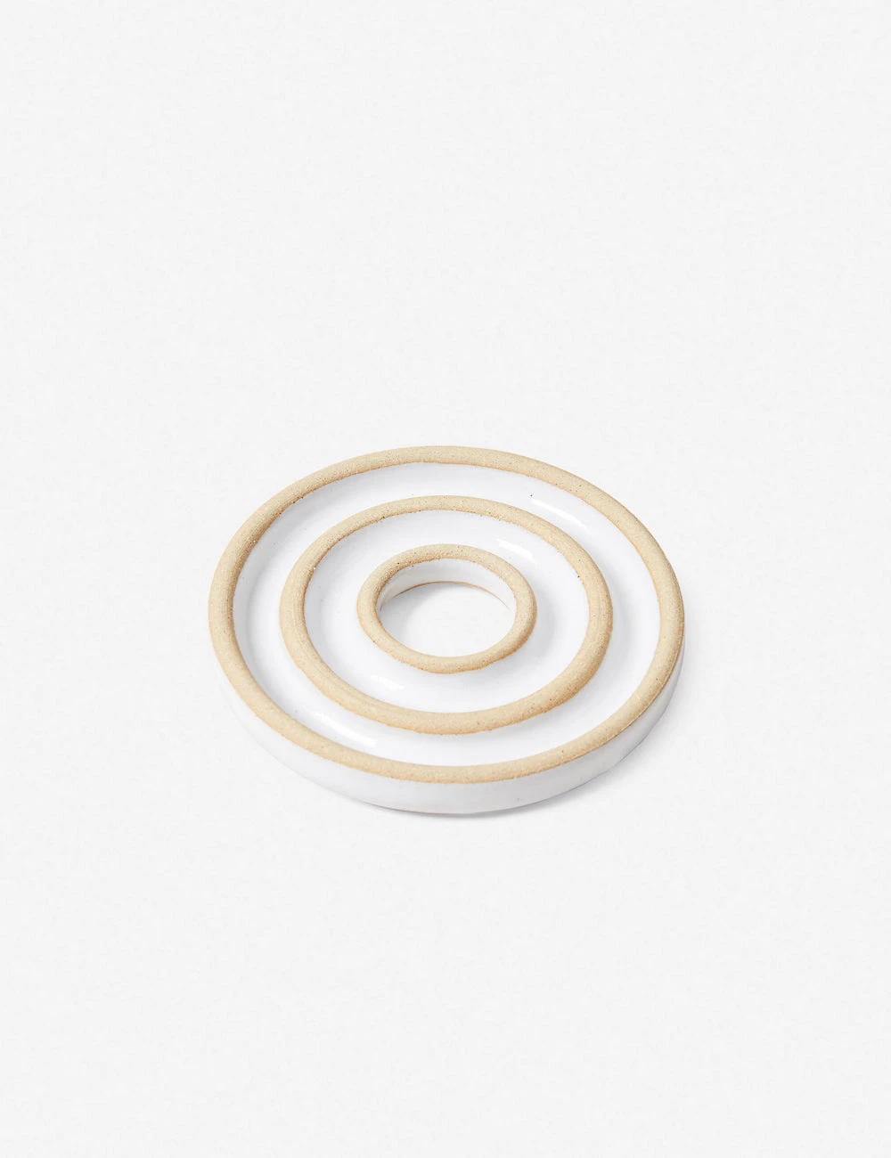 Vermont-based studio Farmhouse Pottery creates handcrafted accents and table essentials with rustic charm. This stoneware trivet is perfect for protecting your counter or tabletop when serving up hearty cuisine and soups. A partial glaze highlights the bullseye pattern for a stylish edge to match its sturdy design.