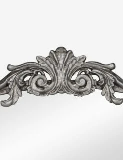 A large ornate floor mirror with impressive style. The Tulca curved standing mirror features a flat bottom edge and traditional scroll detailing at the apex of the metal frame, making it the perfect vintage-inspired full-length mirror for entryways, dining rooms, or bedrooms alike.