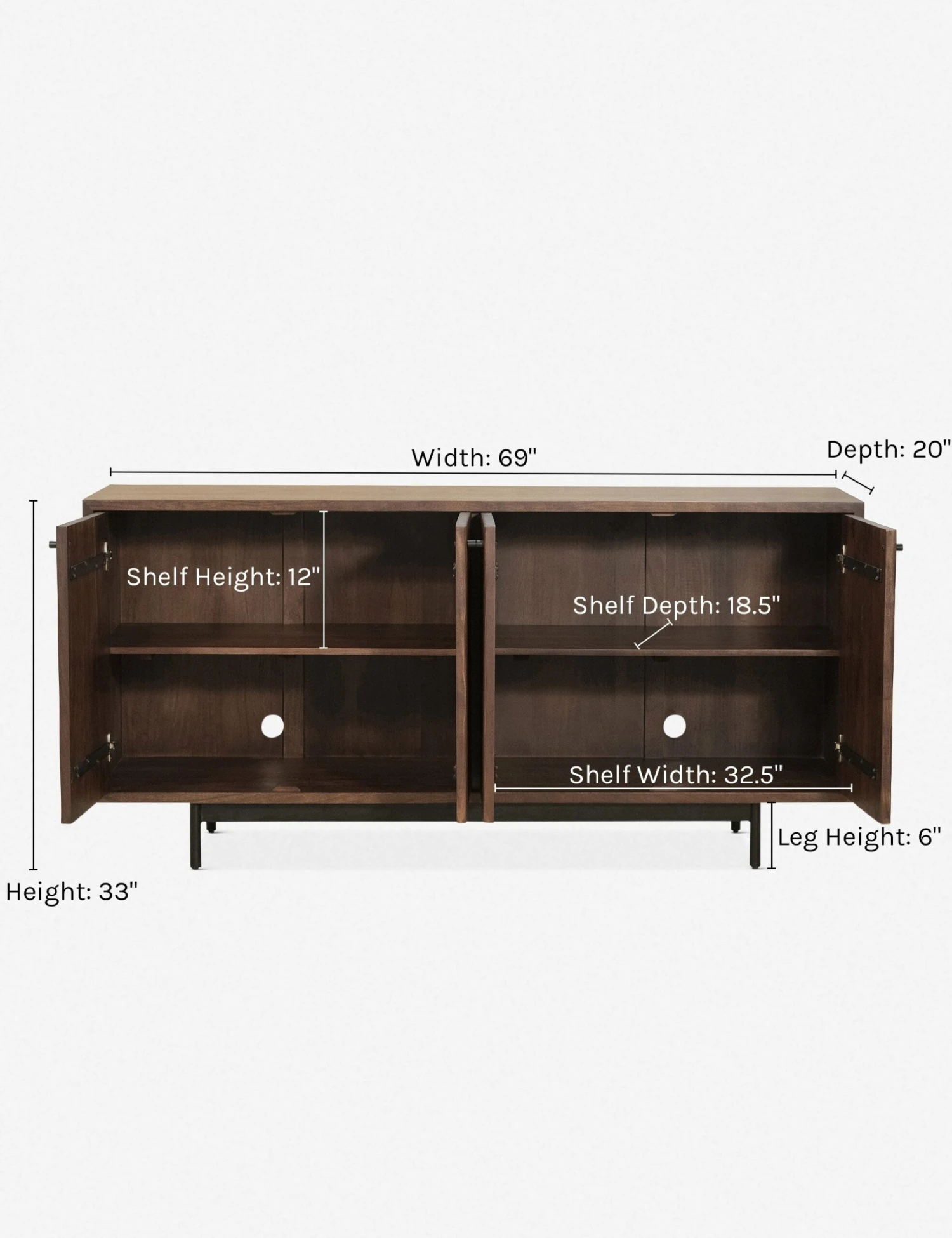 Contemporary style that fits beautifully in any space. Designed with undulating linework carved into the doors, it offers a touch of mod inspiration perfect for living rooms.