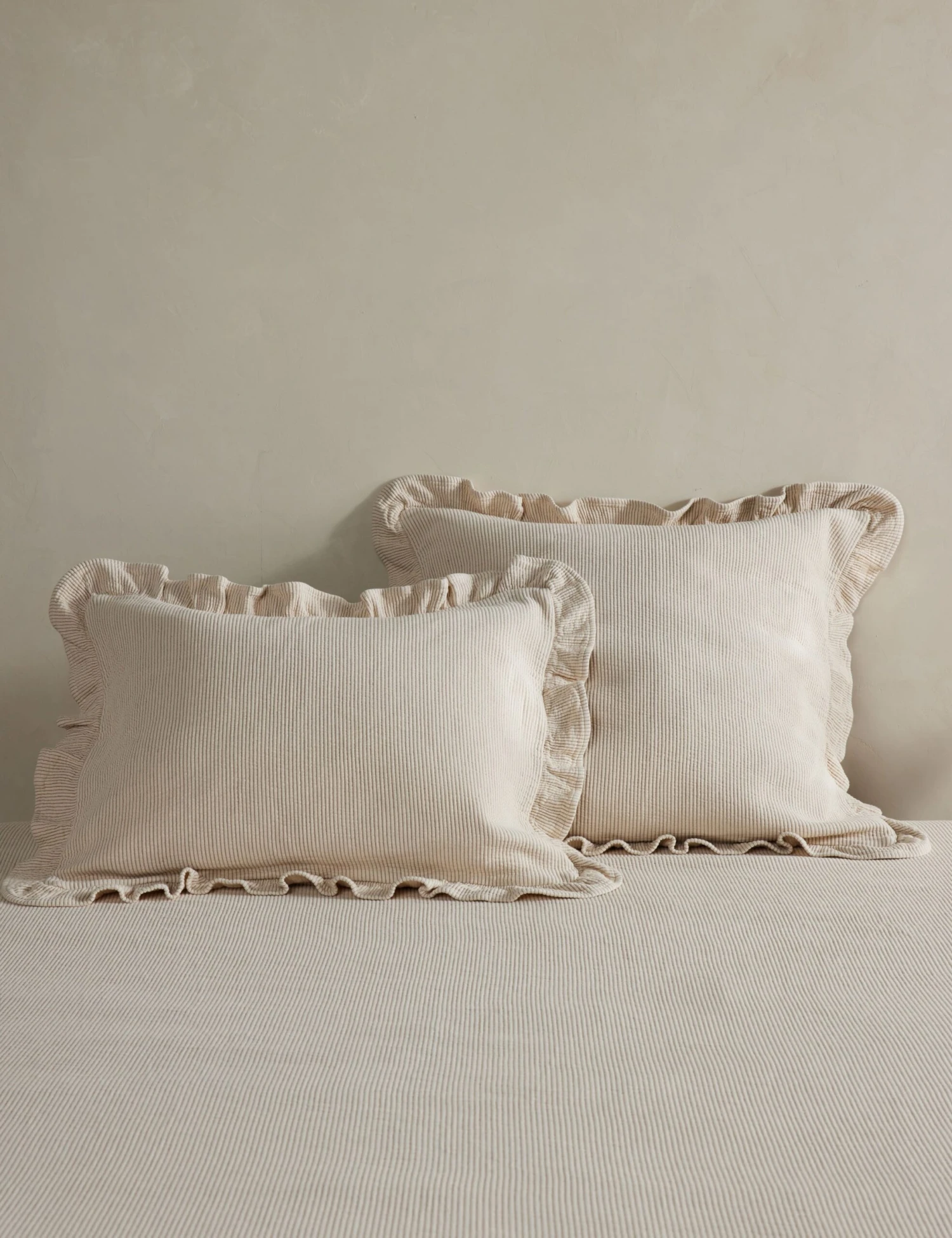 Soft, textural, and chicโthe Vekki sham is the perfect addition to a cozy bed set. The ruffled flange offers an inviting feel set for charm in a timeless curation. This piece is from our exclusive Sarah Sherman Samuel collaboration and features all the trademarks of her warm, edited style.