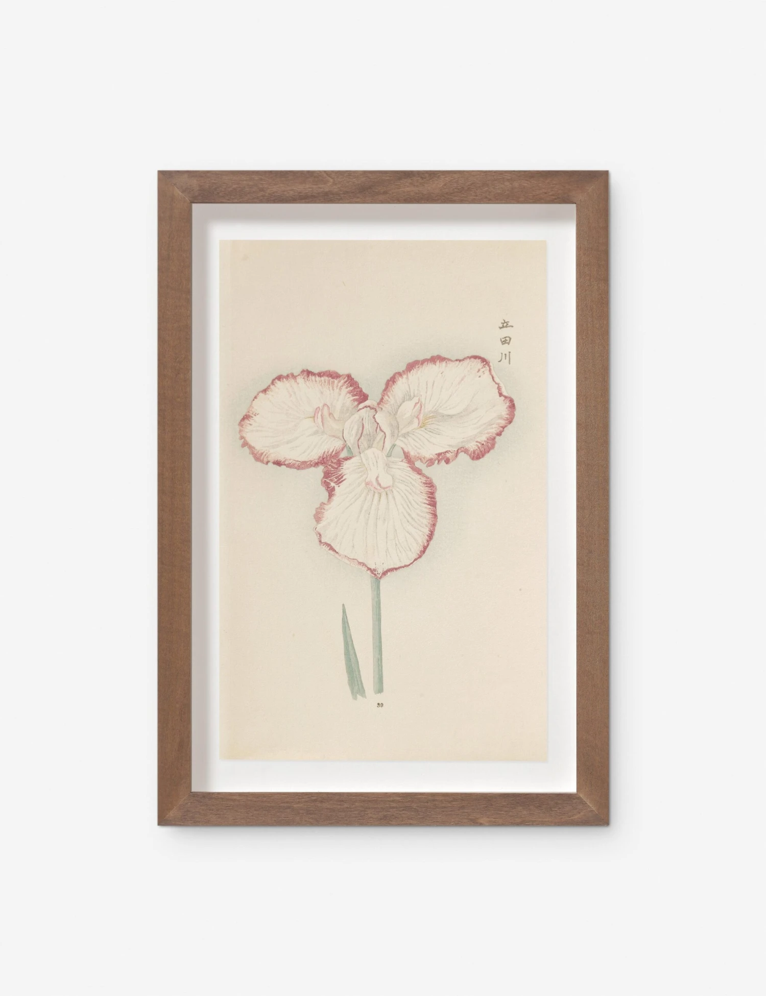 Visual Contrast is a Los Angeles-based fine art studio that produces limited-edition runs of high-quality wall art. This collection of iris paintings was painted by the Japanese botanist Miyoshi Manabu in 1921, offering a vintage touch to your wall decor. Each watercolor was painted on rice paper, adding to the delicate quality—framed in a modern walnut shadowbox and ready for any space from your home office to a bathroom or kitchen.