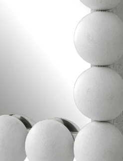 Layer a distinctive note into your look with this trend-forward mirror. Iron beading and a high-tone finish add a chic touch to this framed mirror for a playfully modern appeal. Mount vertically, horizontally, or lean on a dresser for a bright new look.